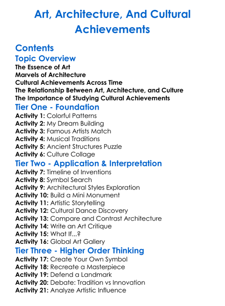 Art Architecture And Cultural Achievements Worksheet Activity Booklet