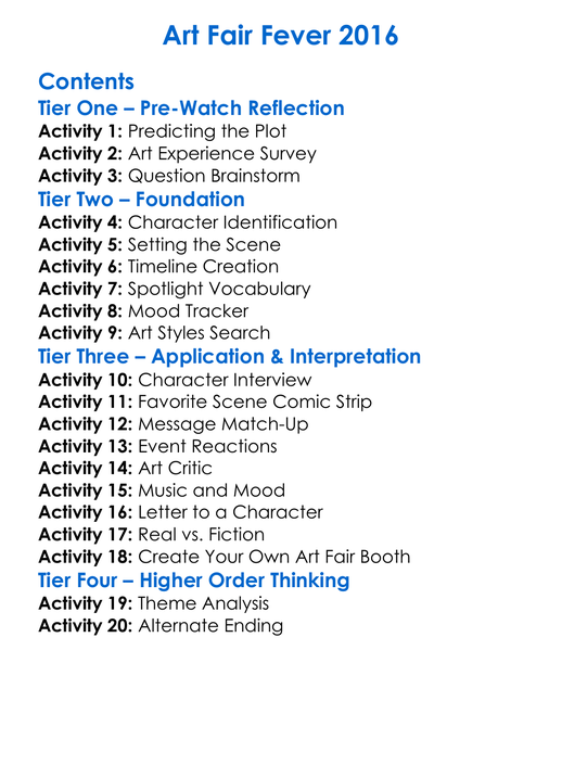 Art Fair Fever 2016 Worksheet Activity Booklet