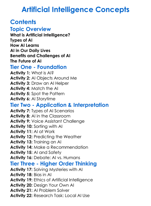 Artificial Intelligence Concepts Worksheet Activity Booklet