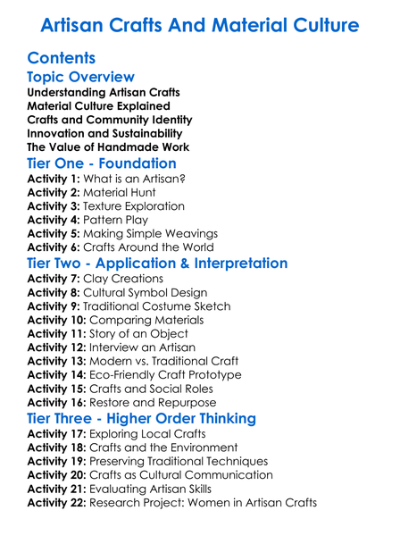 Artisan Crafts And Material Culture Worksheet Activity Booklet