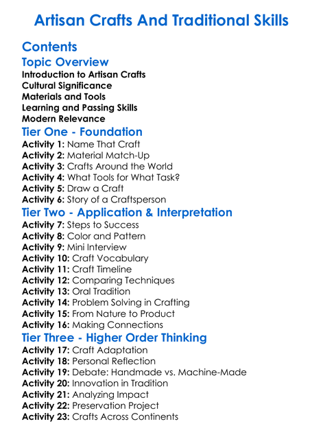 Artisan Crafts And Traditional Skills Worksheet Activity Booklet