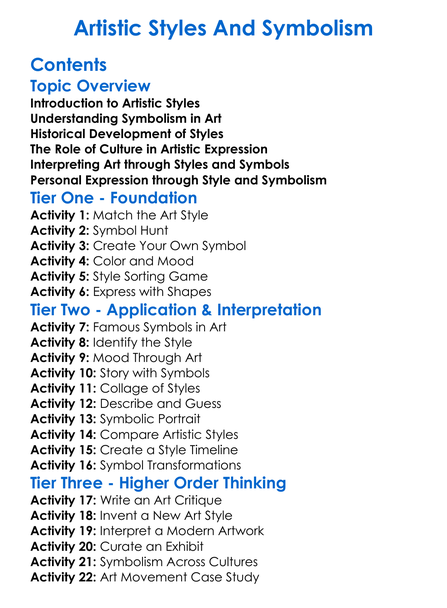 Artistic Styles And Symbolism Worksheet Activity Booklet