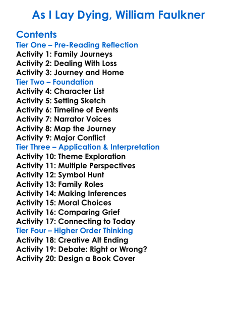 As I Lay Dying William Faulkner Worksheet Activity Booklet