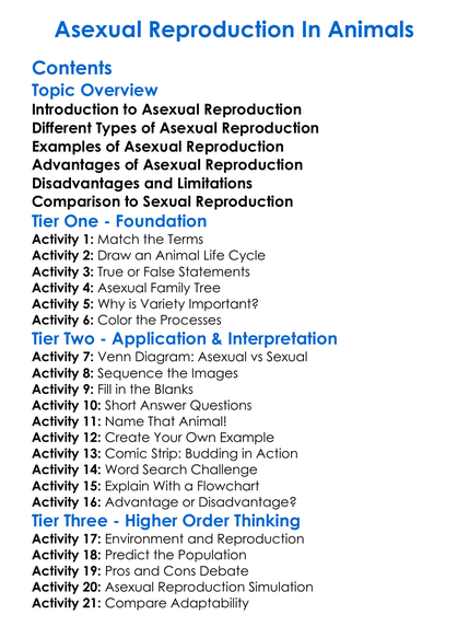Asexual Reproduction In Animals Worksheet Activity Booklet