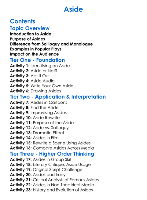 Aside Worksheet Activity Booklet