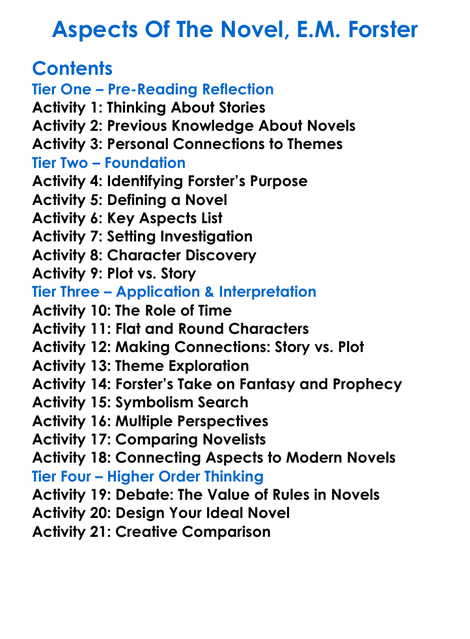 Aspects Of The Novel Em Forster Worksheet Activity Booklet