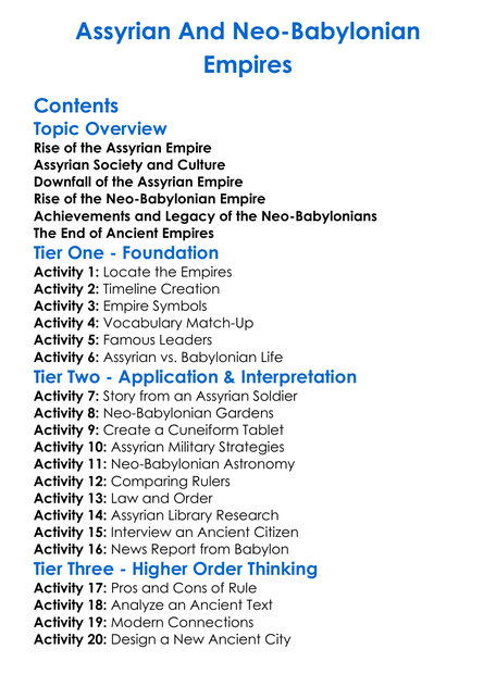 Assyrian And Neo-Babylonian Empires Worksheet Activity Booklet