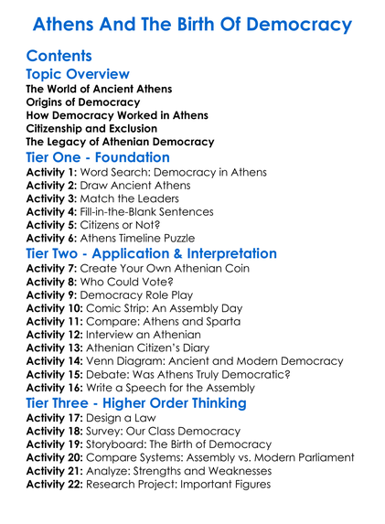 Athens And The Birth Of Democracy Worksheet Activity Booklet