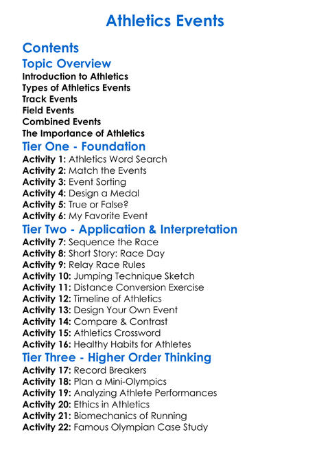 Athletics Events Worksheet Activity Booklet