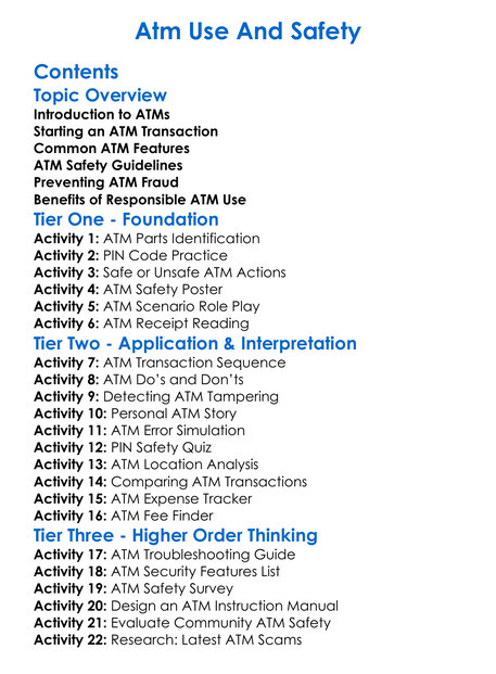 Atm Use And Safety Worksheet Activity Booklet