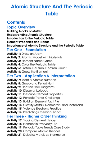 Atomic Structure And The Periodic Table Worksheet Activity Booklet