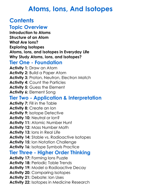 Atoms Ions And Isotopes Worksheet Activity Booklet