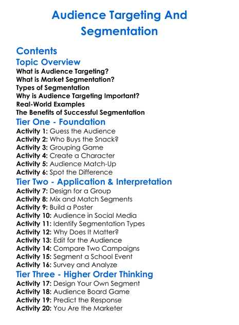 Audience Targeting And Segmentation Worksheet Activity Booklet