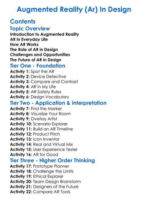 Augmented Reality Ar In Design Worksheet Activity Booklet