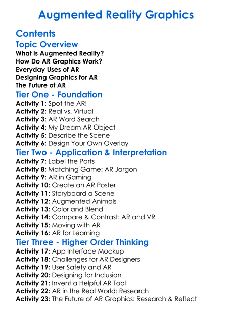 Augmented Reality Graphics Worksheet Activity Booklet