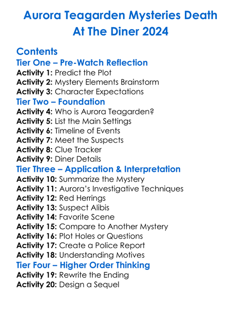 Aurora Teagarden Mysteries Death At The Diner 2024 Worksheet Activity Booklet
