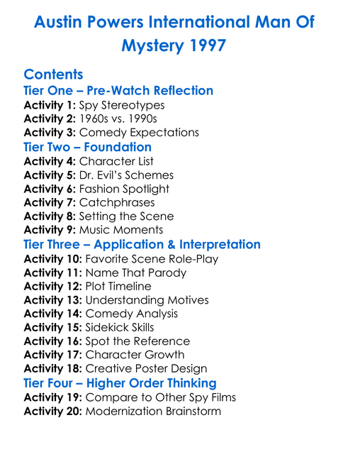 Austin Powers International Man Of Mystery 1997 Worksheet Activity Booklet