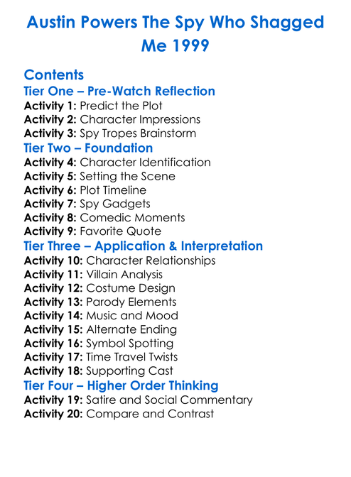 Austin Powers The Spy Who Shagged Me 1999 Worksheet Activity Booklet