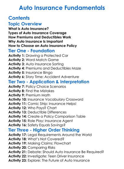 Auto Insurance Fundamentals Worksheet Activity Booklet