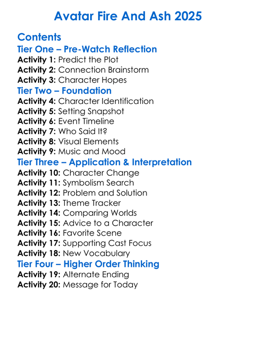 Avatar Fire And Ash 2025 Worksheet Activity Booklet