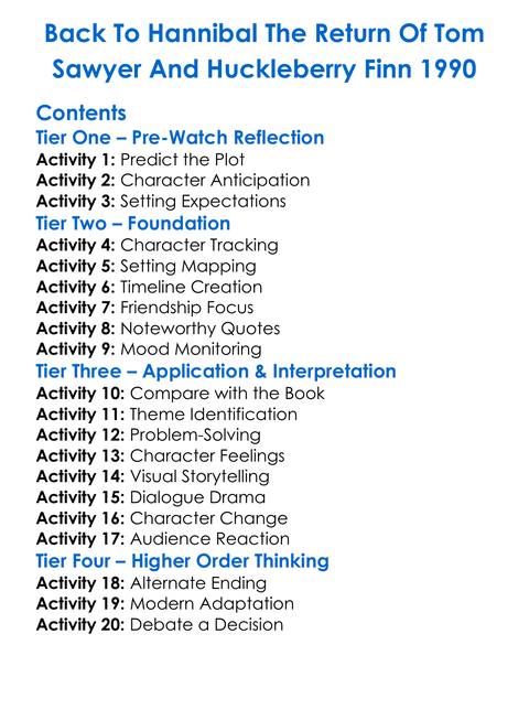 Back To Hannibal The Return Of Tom Sawyer And Huckleberry Finn 1990 Worksheet Activity Booklet