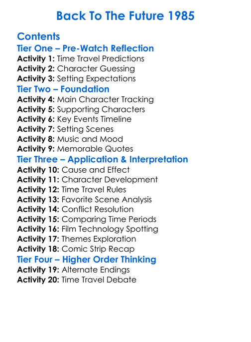 Back To The Future 1985 Worksheet Activity Booklet