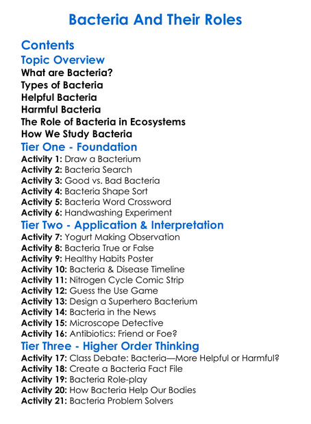 Bacteria And Their Roles Worksheet Activity Booklet