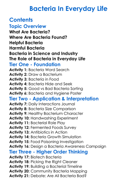 Bacteria In Everyday Life Worksheet Activity Booklet