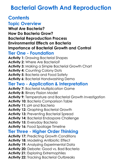 Bacterial Growth And Reproduction Worksheet Activity Booklet