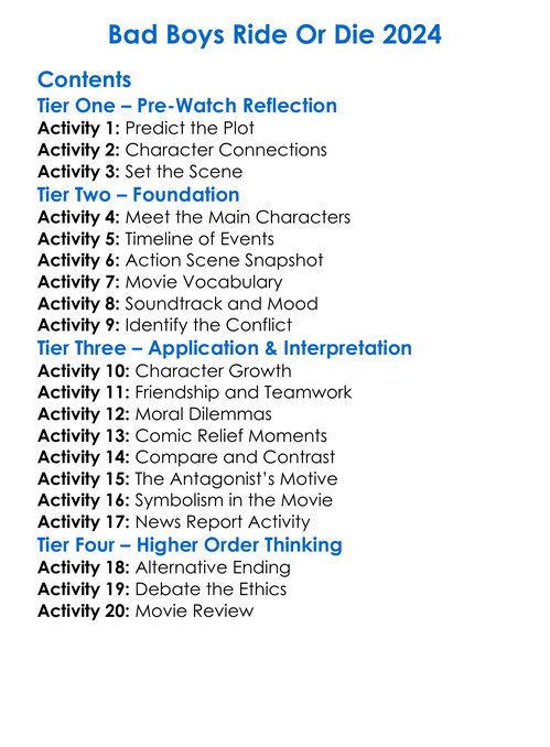 Bad Boys Ride Or Die 2024 Worksheet Activity Booklet