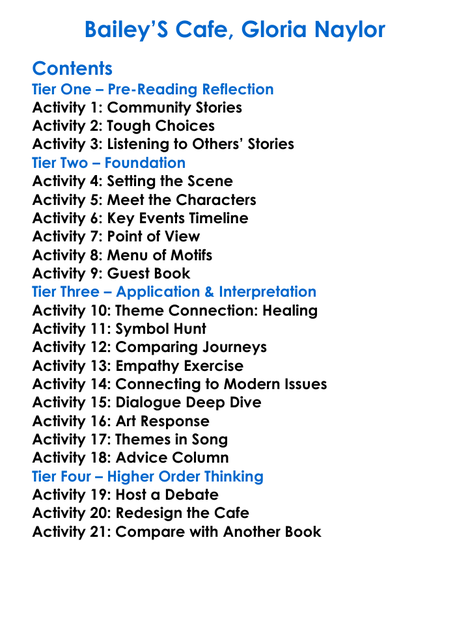 Baileys Cafe Gloria Naylor Worksheet Activity Booklet