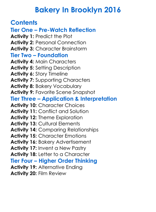 Bakery In Brooklyn 2016 Worksheet Activity Booklet