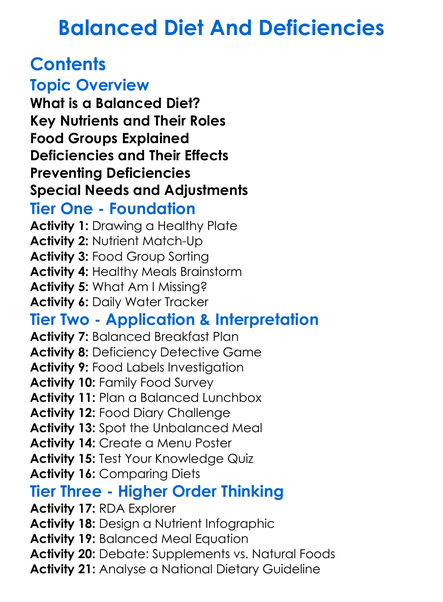 Balanced Diet And Deficiencies Worksheet Activity Booklet