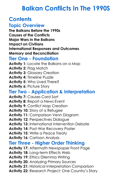 Balkan Conflicts In The 1990S Worksheet Activity Booklet