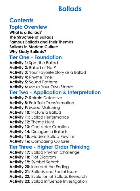 Ballads Worksheet Activity Booklet
