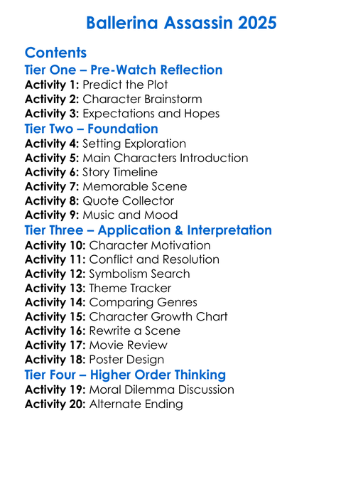 Ballerina Assassin 2025 Worksheet Activity Booklet