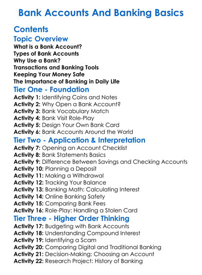 Bank Accounts And Banking Basics Worksheet Activity Booklet