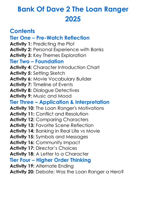 Bank Of Dave 2 The Loan Ranger 2025 Worksheet Activity Booklet