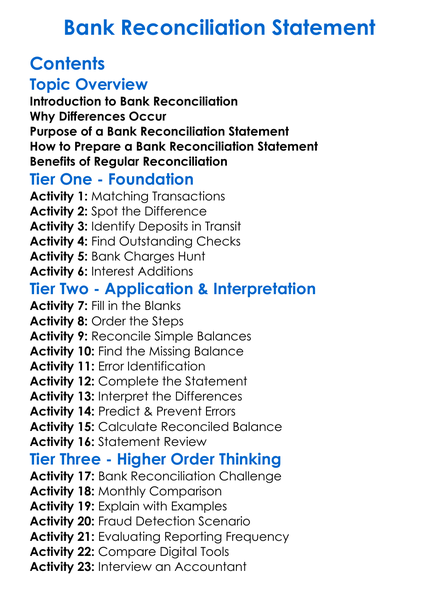 Bank Reconciliation Statement Worksheet Activity Booklet