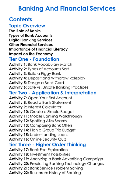 Banking And Financial Services Worksheet Activity Booklet