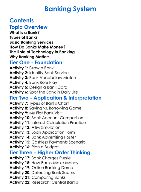 Banking System Worksheet Activity Booklet