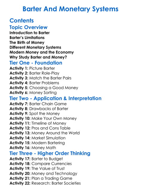 Barter And Monetary Systems Worksheet Activity Booklet