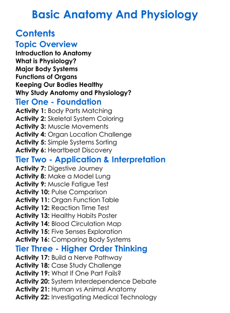 Basic Anatomy And Physiology Worksheet Activity Booklet