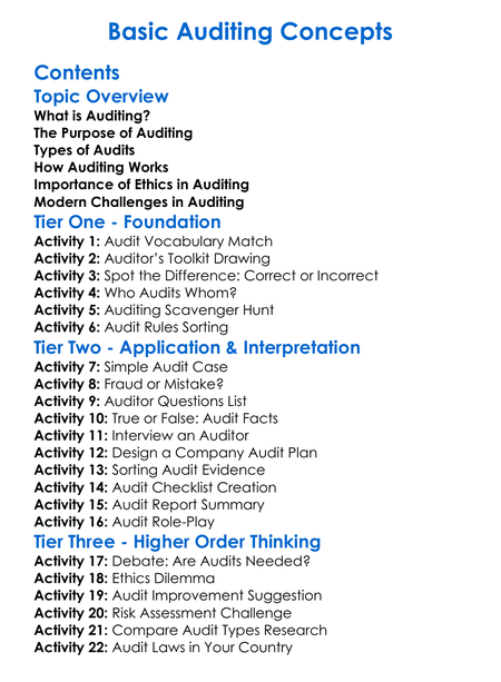 Basic Auditing Concepts Worksheet Activity Booklet