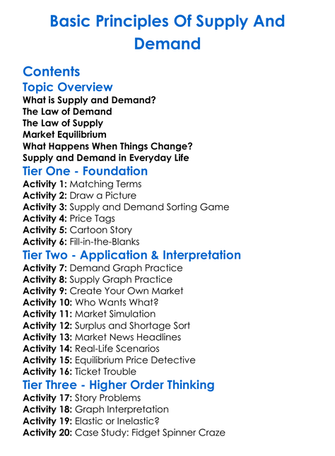 Basic Principles Of Supply And Demand Worksheet Activity Booklet
