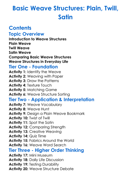Basic Weave Structures Plain Twill Satin Worksheet Activity Booklet