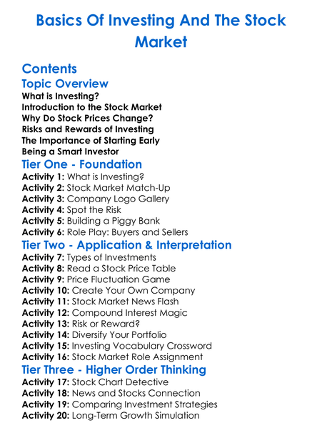 Basics Of Investing And The Stock Market Worksheet Activity Booklet