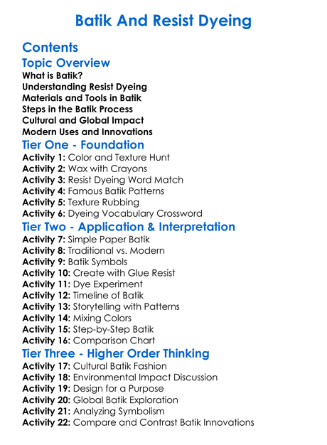 Batik And Resist Dyeing Worksheet Activity Booklet