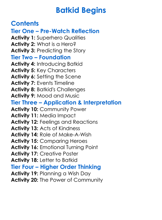 Batkid Begins Worksheet Activity Booklet