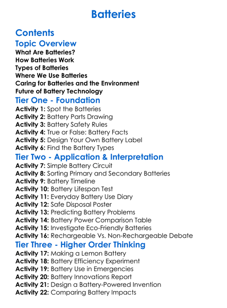 Batteries Worksheet Activity Booklet